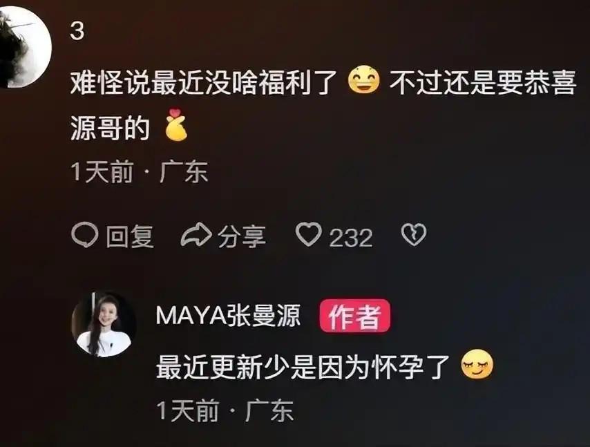 此外,她还在评论区里透露,自己已经怀孕。